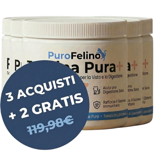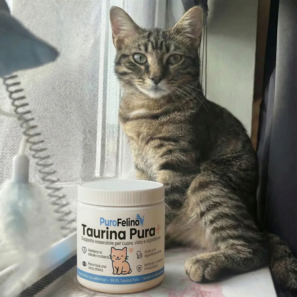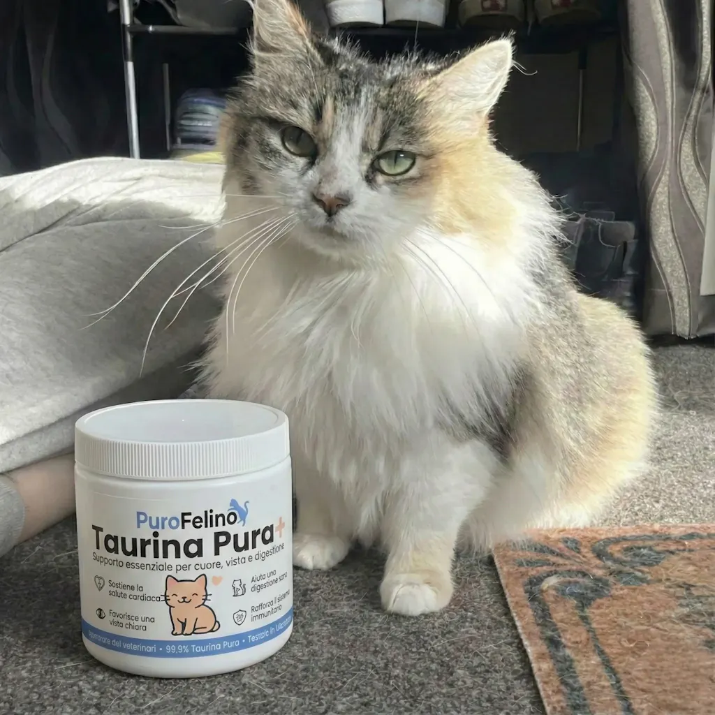 Anche se non noti cambiamenti significativi nel tuo gatto, le carenze di taurina possono impiegare mesi a manifestarsi. Integrare fin da ora permette di agire d'anticipo, prevenendo l’insorgere di squilibri più gravi.